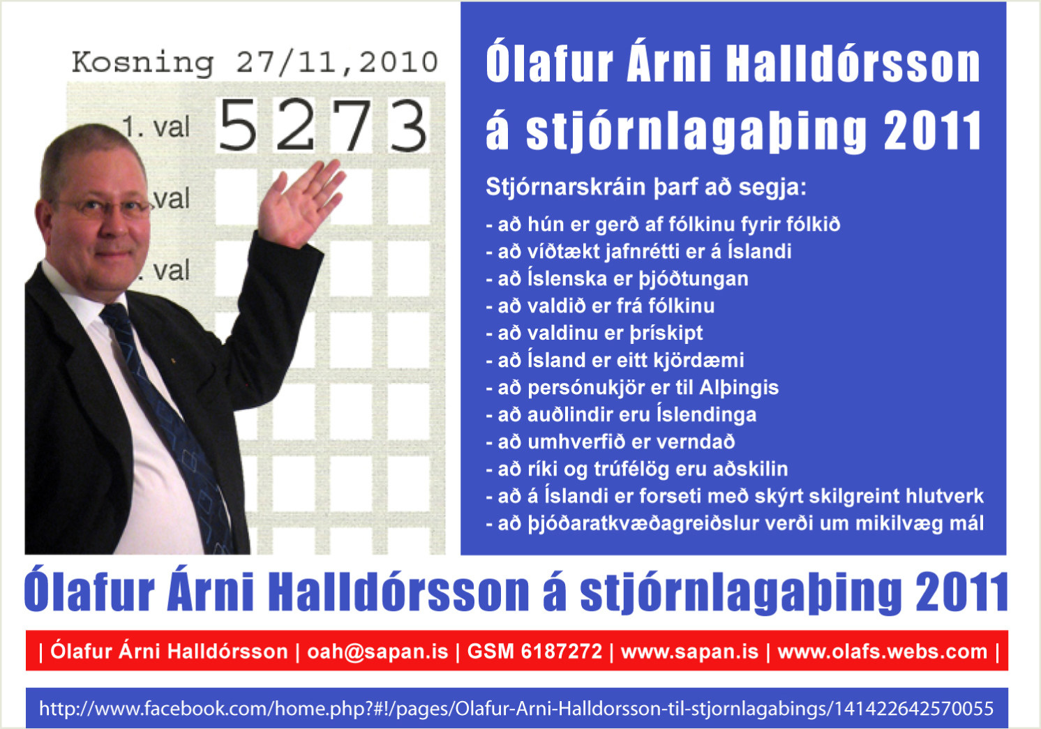 Smellið á myndina til að stækka hana Hlustið hér á viðtal á RÚV við Ólaf Árna Halldórsson: www.ruv.is/stjornlagathing/frambjodendur?nr=5273 |